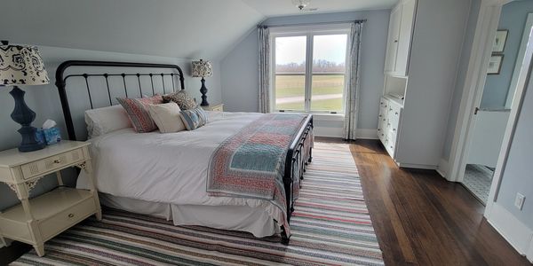 The 1903 house has been beautifully restored, and comfortably sleeps 5 adults. There is a king bed in the master bedroom and a queen bed and crib in the second bedroom. There is also an adorable loft area with a day bed. All of the beds are located on the second floor, along with two full bathrooms. The main level of the house boasts a large kitchen equipped withe cooking utensils and dishes, a large dining room, living room and sitting room, and a half bath. There is also a washer and dryer available for use. The house has a huge front porch and a lovely patio where you can relax by the gas fire pit, and grill dinner.