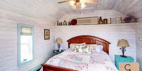 The Schoolhouse is an adorable one room building just across the patio form the Antique House. This very nice nook sleeps 2 adults, with a king bed and has a small sitting porch. A half bath is attached. Keurig included.